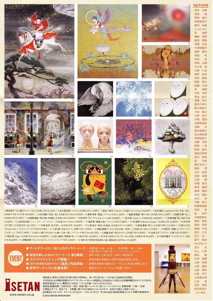 …あ、あの、来年1月2日〜5日、伊勢丹新宿店7階催事場にて、 グループ展に参加させていただきます。