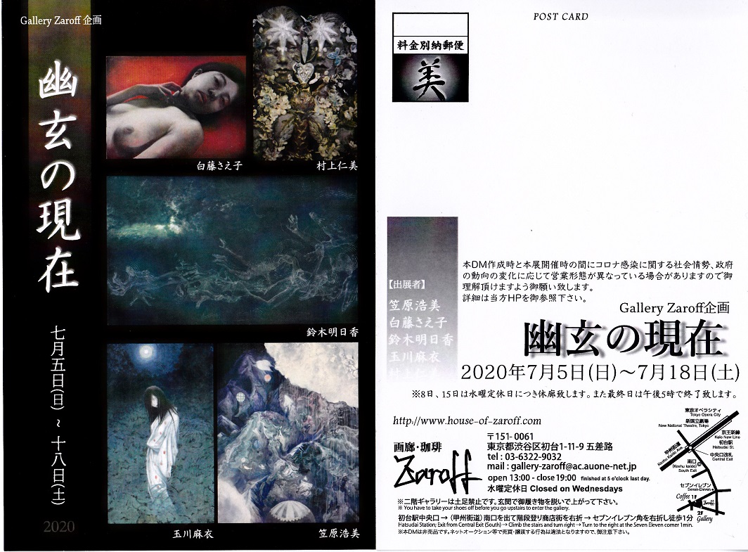 2020/7/5(日) ~18(土) 水曜休 13:00~19:00(最終日~17:00)