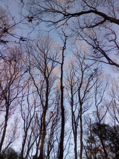 カウントダウンは、近所の雑木林にて持参した燗酒を啜りつつ、影絵のような木立にうっとりしつつ。