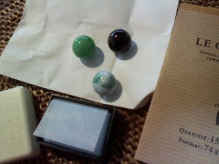 イギリスの古いビー玉と、チェコスロバキアの練り消し。パラフィン紙ぽいメモ帳。