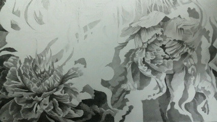 墨だけでは描いても見えないから、シルバーの絵の具を混ぜてみた。
