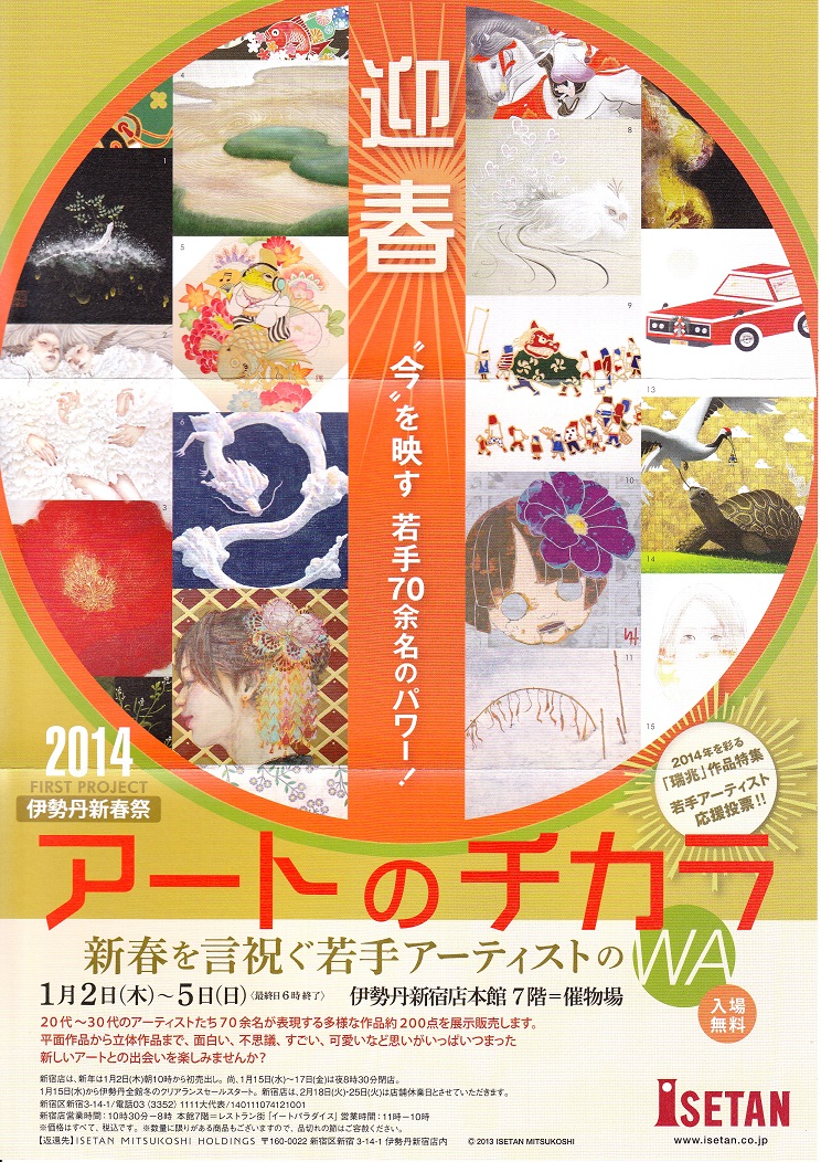 …あ、あの、来年1月2日〜5日、伊勢丹新宿店7階催事場にて、 グループ展に参加させていただきます。