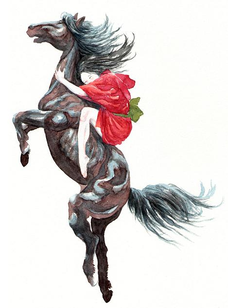 昔々貧しい農家に、一人の美しい娘が居て、一頭の雄馬を飼っていて。