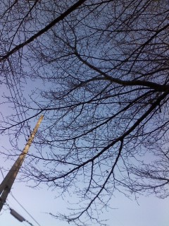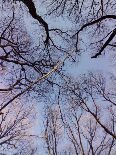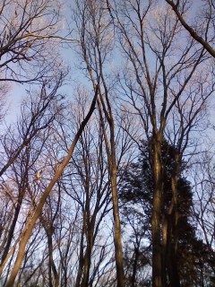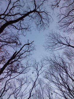 カウントダウンは、近所の雑木林にて持参した燗酒を啜りつつ、影絵のような木立にうっとりしつつ。