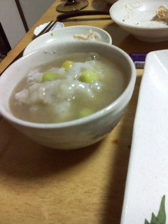 擬制豆腐(人参・木耳・鶏挽・三つ葉・塩昆布)