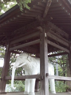 右下は、観音寺の鐘突堂にいた張り子の象。