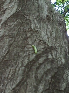 神社の境内にある大きな楓の幹を、芋虫が這っていた。