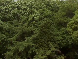 新緑の中を黒々とうねる幹。