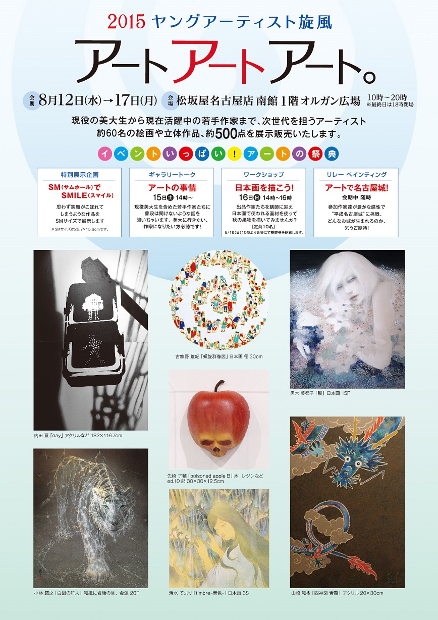 4月の「Animals展」から、6~8月に二ヶ所で「たんざく展」、「見参」「水着展」と明日から名古屋で始まる「アートアートアート」。